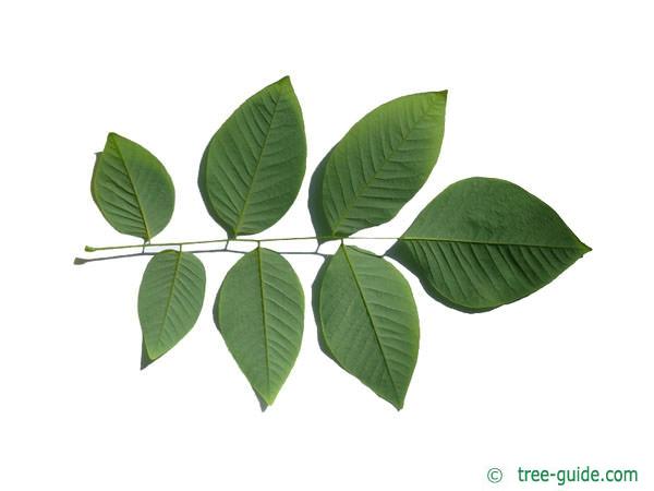 The leaves of Yellowwood are green, odd pinnate and up to 30 cm (11.8 in) long with 5-11 oval single sheets about 6 cm (2.4 in) long. The leaf margin is smooth.